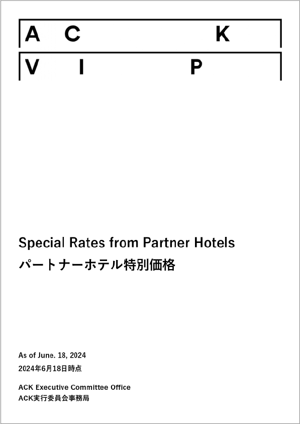 ACKのために特別な宿泊レートをご提供いただいているホテルをご紹介いたします。